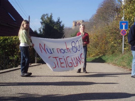 der Rechberg. An der Abzeigung zum gut 100 Meter extrem steilen Anstieg