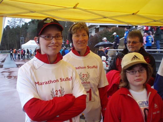 Down-Syndrom-Marathonstaffel, begleitet heute von Thomas. Und auch Gabriele