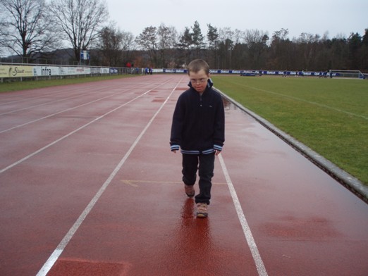 Thomas eine Runde auf dem Sportgelände, bis ich dem mittlerweile im Wald