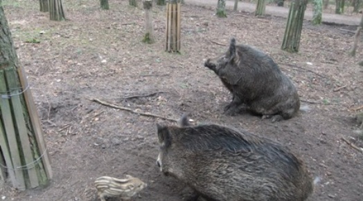 Es geht vorbei am Wildgehege. Eine Bache ist gerade