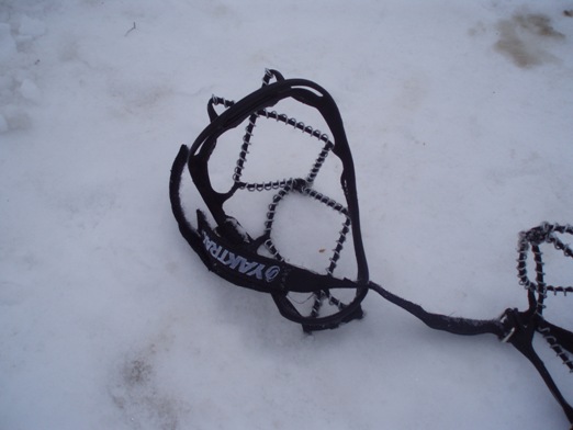 kurze Zeit kann ich meine YakTrax von den Schuhen ziehen.