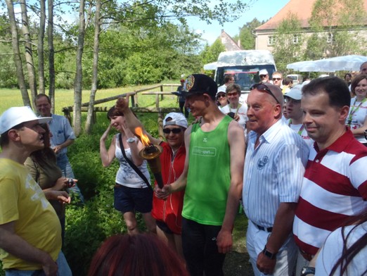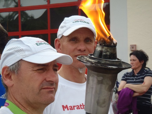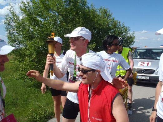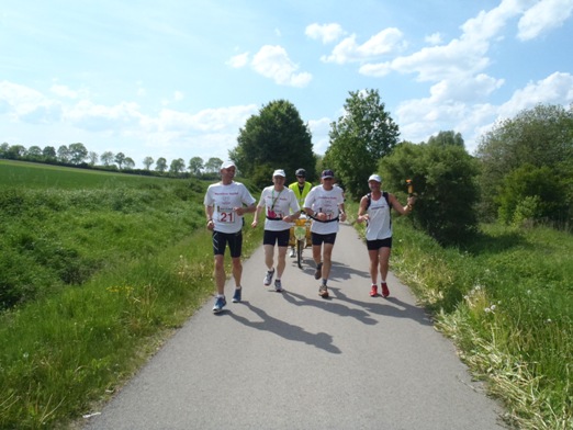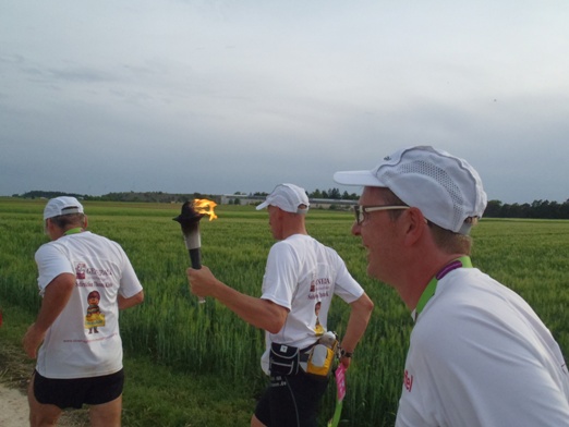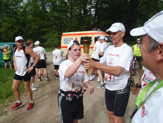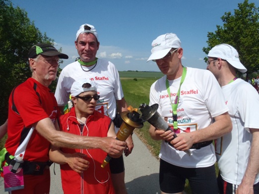 die Fackel kurz am Ort, bevor es weiter geht. Wir wollen ja viele Menschen