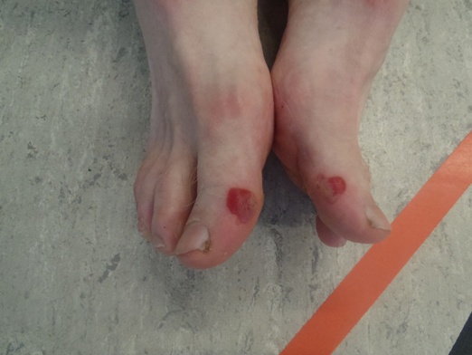 Schuld an den Blasen ist, war rechts eine schlecht sitzende Socke Grund für
