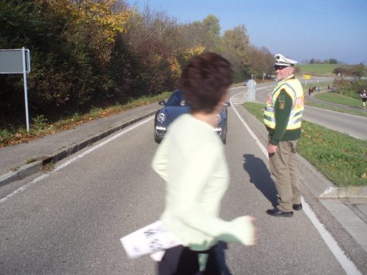 noch lange nicht. Zuerst stoppen wir einen Porschefahrer beim Überqueren der