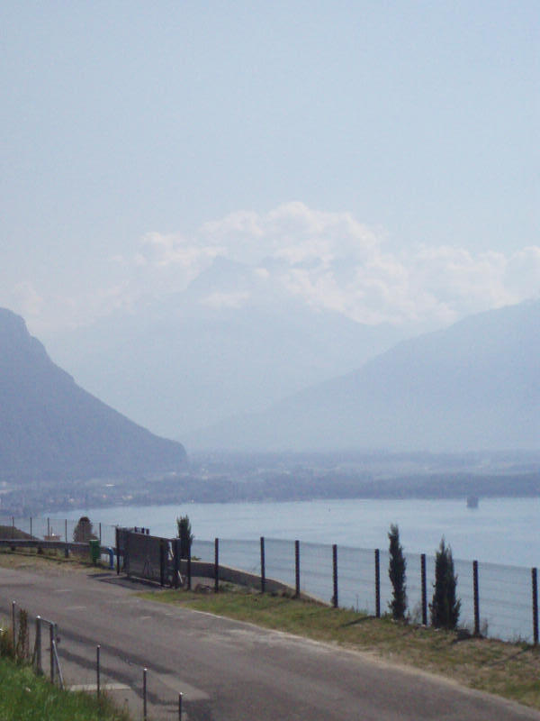 die in der Ferne sichtbare Silhouette der französischen Alpen. Seltsam, war