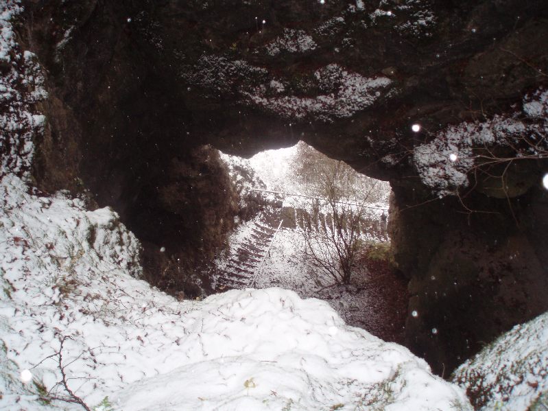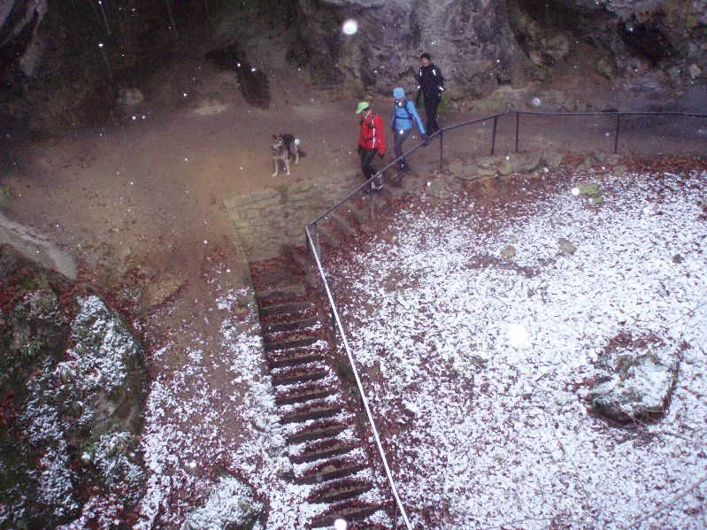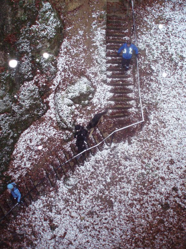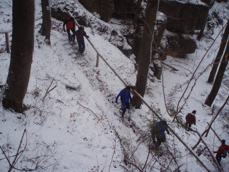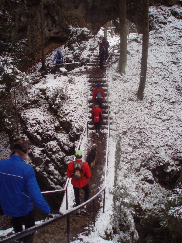 in den Fels gehauene Treppenstufen, die uns später durch den Kamin nach unten