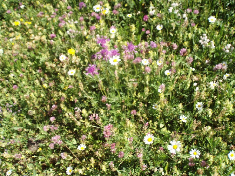 schmalen Pfad mitten durch eine blühende Bergwiese. Im Laufen pflückte ich