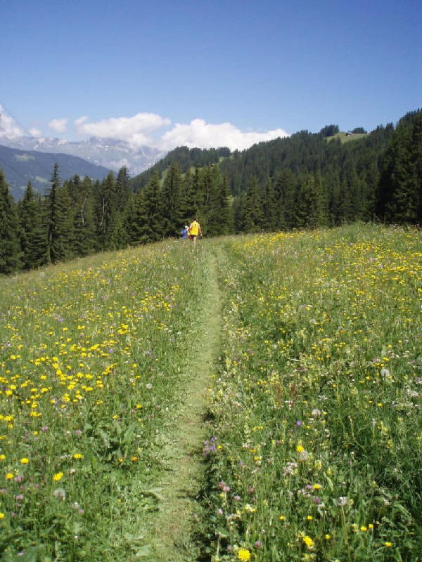die es von Foppa aus bis Parpan ständig geht. Blumen pflücken erlaubt, auch