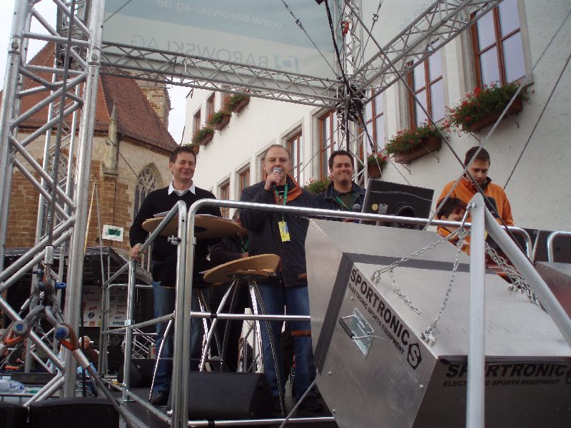 noch rechtzeitig zum Start, wo gerade mit anheizender Musik das