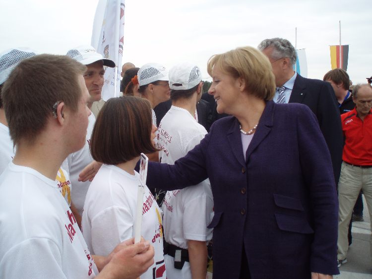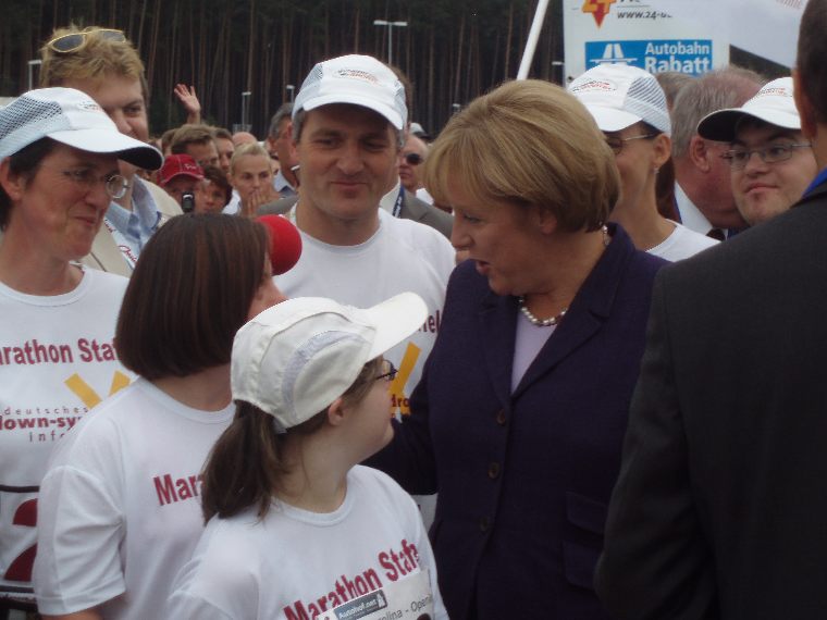 mit dem früheren Olympiasieger im Marathon Waldemar Cierpinski die Kanzlerin
