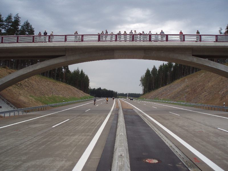 als einer der ersten die neue Autobahn mit dem Auto befahren. Was später