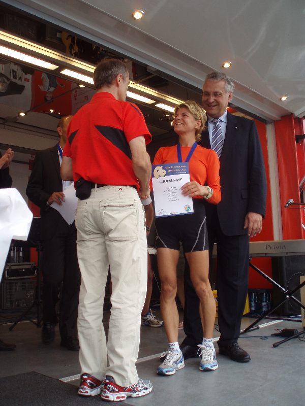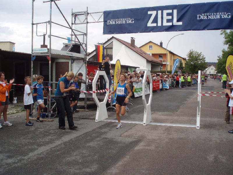 Stephanie Burger (LLC Marathon Regensburg) überquert als 2. die Ziellinie