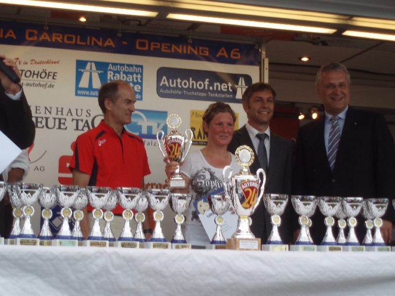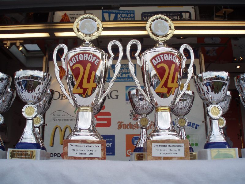 während die Siegerpokale auf ihre Übergabe warten, plaudert Cierpinski über