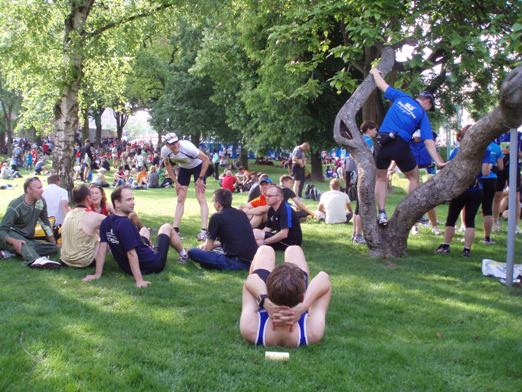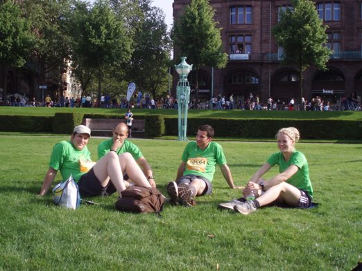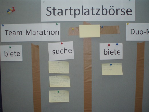 zusammenfinden: Marathonläufer, Halbmarathonis, dazu die Team- und