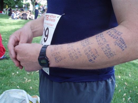 notieren sich Andere Ihre Zielzeiten auf den Arm. Er läuft heute