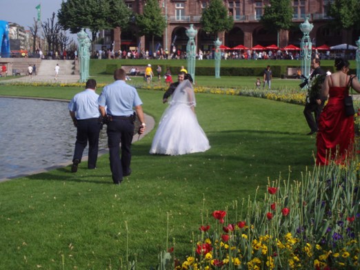 der Suche nach einem ruhigen Plätzchen für ihr Hochzeitsphoto. Als sie
