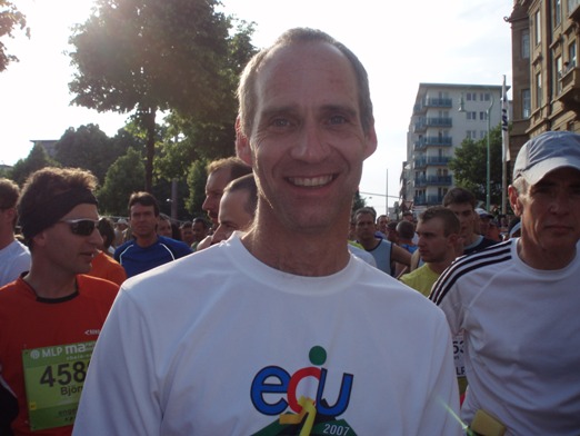dabei, Lauffreund Helge im Trikot des Europa-Cup der Supermarathone