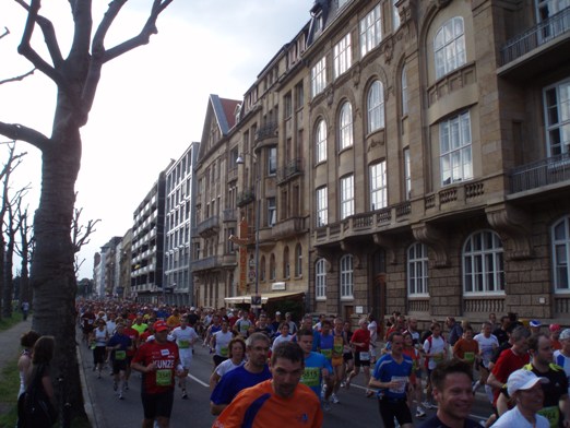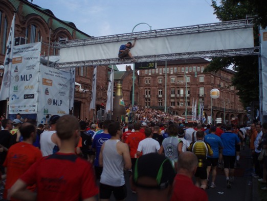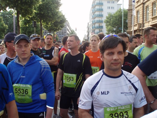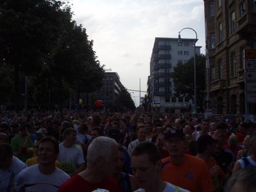 Strecke sind, sammeln sich auch die Marathonläufer auf dem