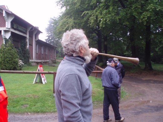 postiert. Mit weithin schallendem klang aus seinem Horn begrüßt er alle