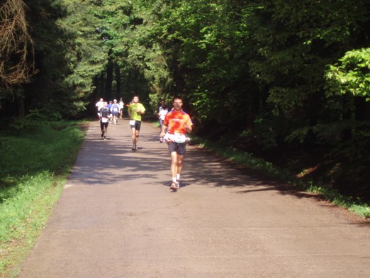 Strecke, wie den Herrn im auffälligen Trainingsanzug und dem langen Bart
