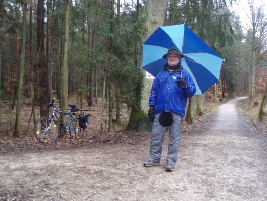 Stadtwald verlassen. Hier müssen wir noch eine vor Nässe triefende Wiese