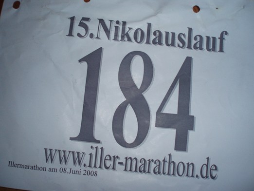 halte etwas erstaunt Startnummer 184 des 15. Nikolauslaufs in Händen. Mit so