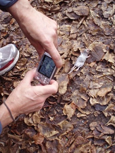 Maus, die alle Viere von sich streckend mitten auf dem Weg liegt, scheint