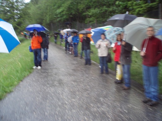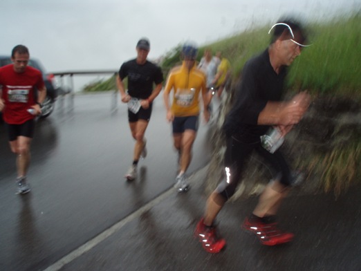 vielen Zuschauern, die hier im Regen stehen und uns anfeuern.