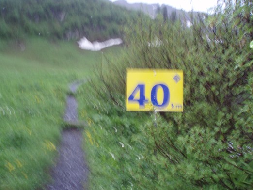 geschafft! Der Regen und die Kälte trieb mich vorwärts und so bleibe ich