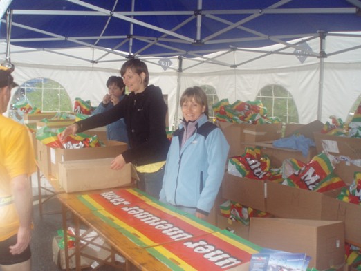 Finishergeschenk. Die gibt es hier immer noch erst im Ziel. So darf jeder