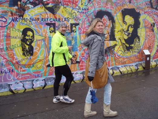 an der East Side Gallery erwartet uns meine Freundin. Sie ist losgezogen und
