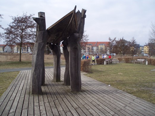 markiert die nordwestliche Ecke des Mauerwegs. von dort aus geht es nach
