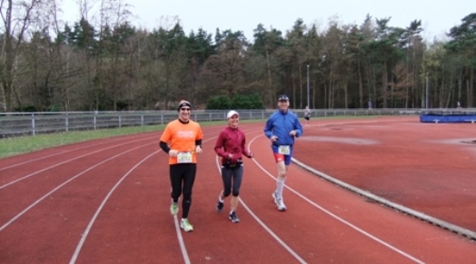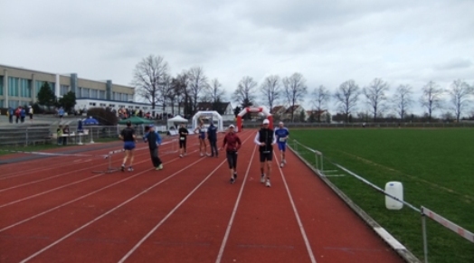 Einige gemütliche Aufwärmrunden auf der Laufbahn.