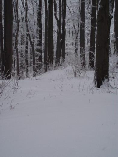 bergan bis zum Waldrand und meine Spuren sind die einzigen im Neuschnee. Ich