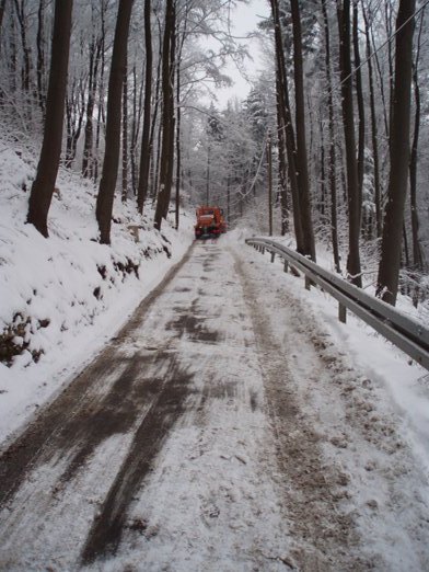 auszurutschen. Fast unfallfrei erreiche ich den Waldrand und die Fahrstraße.
