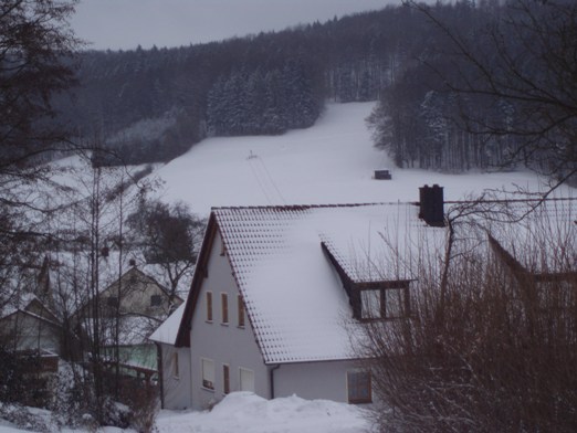 ob der kleine Skilift dort in Betrieb ist. Ein Blick hinüber zum Hang zeigt