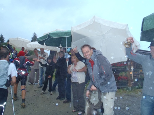 Wie erahnt, kommt nach dem Startschuss der erste große Regen. Oh