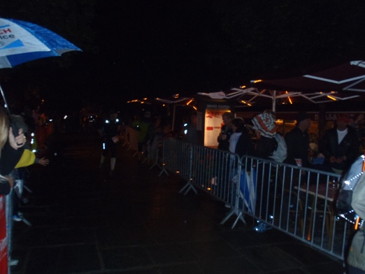 der Verpflegungsstelle. Voll ist es hier, Menschen und Läufer stehen