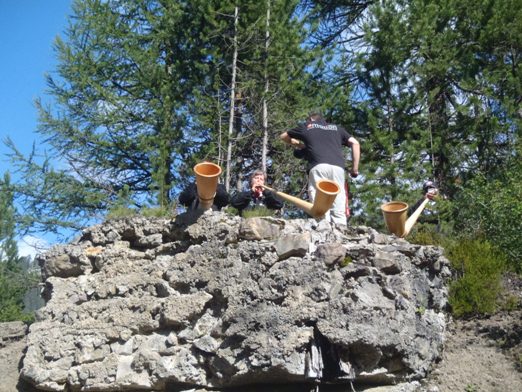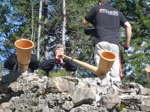 Dafür blasen drei Albhörner über uns, die Filmkamera dicht dabei.