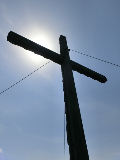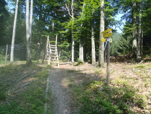 und wieder über den Zaun und auf dem Bergpfad hoch zum Gipfel.