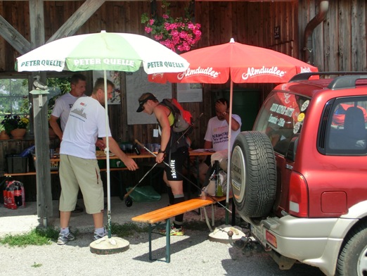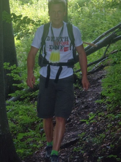 Gerhard macht sich auf den Weg zur Streckenmarkierung.