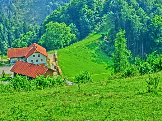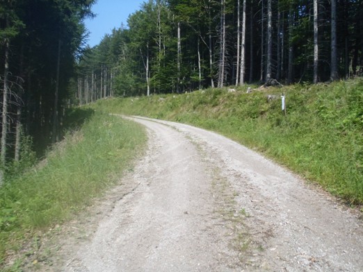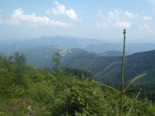 Wald auf. Ich erreiche Almwiesen. Jetzt kann es nicht mehr weit sein. Ein