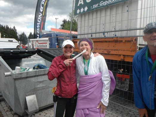 Auch Susanne hat die Backen noch voll für die letzten 8 km.