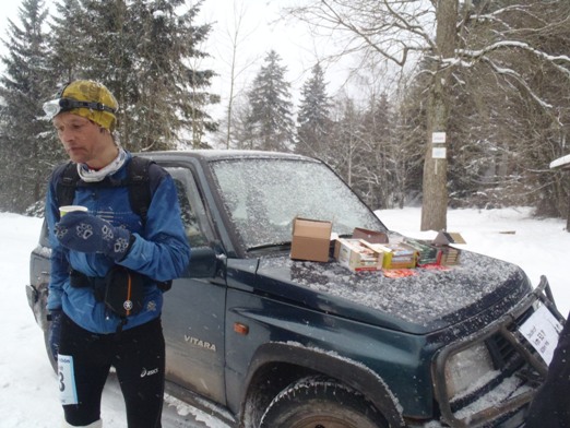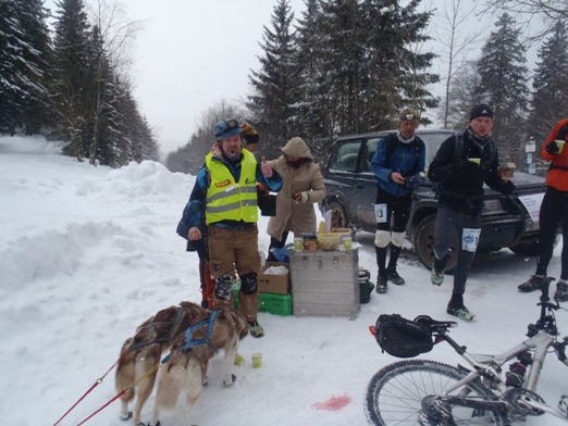 Entsafter überhole ich noch einen Läufer, der sich seine Yak Trax"