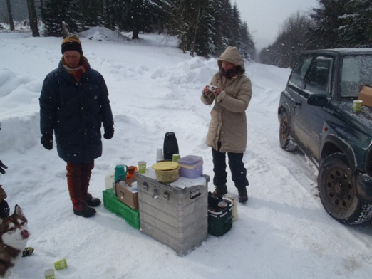 Getränke stehen, mit dem Schlitten her gebracht. Eine Sondergenehmigung hat