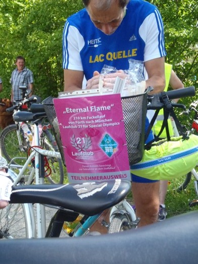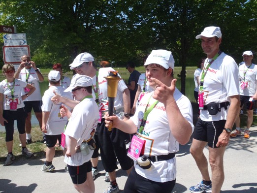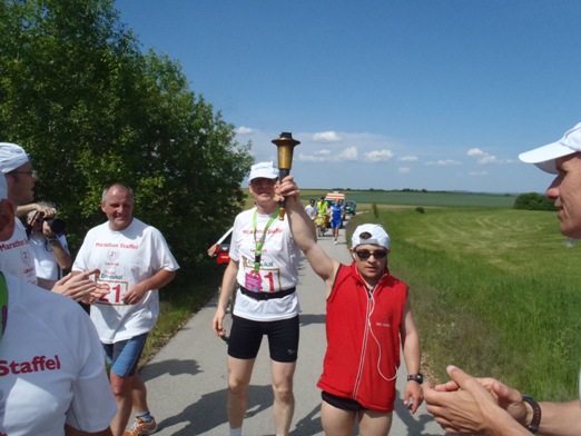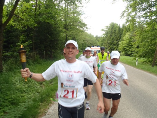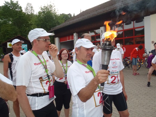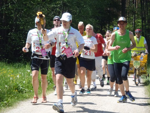 die Fackel kurz am Ort, bevor es weiter geht. Wir wollen ja viele Menschen