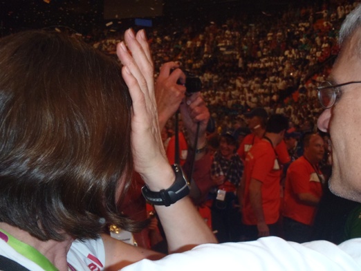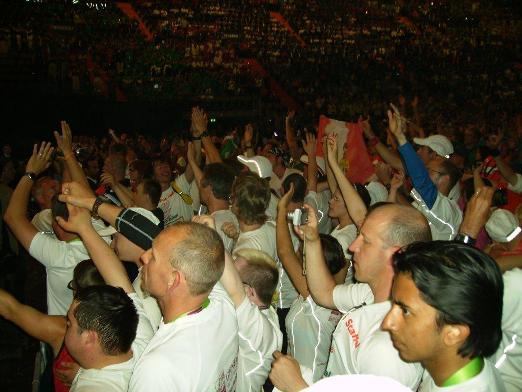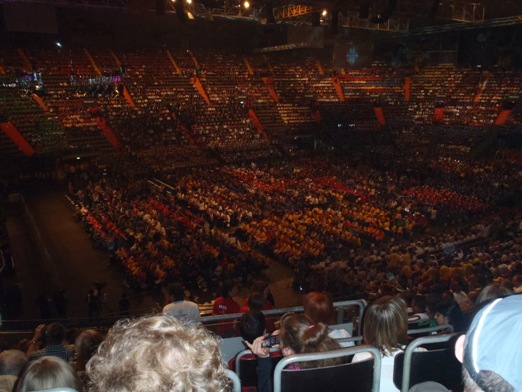 Dann sitzen wir in der Halle. Beeindruckend und schön die mit all den