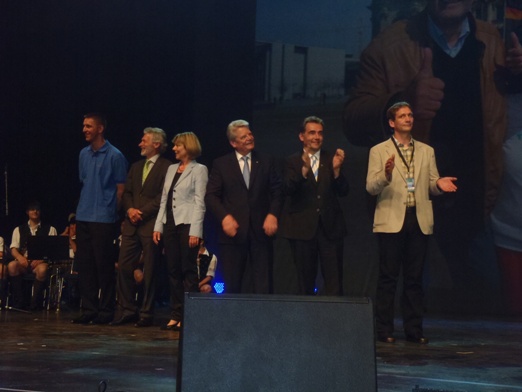 Seehofer, Bundespräsident Gauck wird das Olympische Feuer entzündet.
