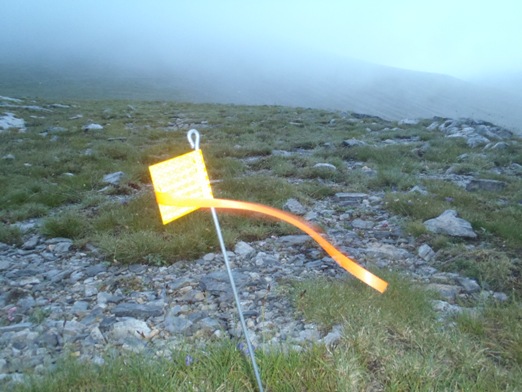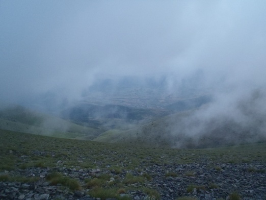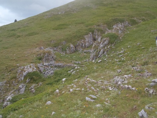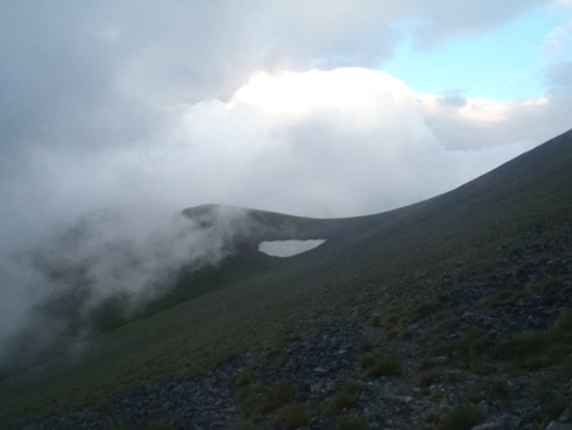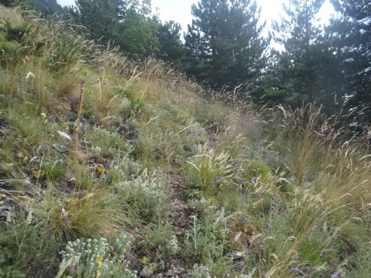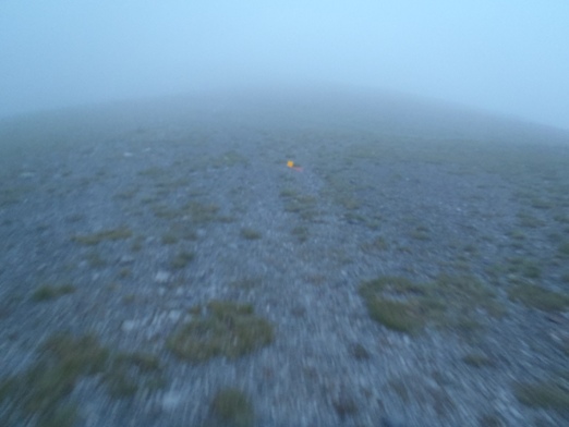 Downhill-Phase. Sofort vom Gipfel geht es steil und weglos bergab. Nur ein
