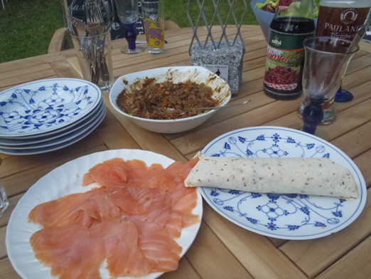 Eventgrillen! Es gibt Wraps mit Lachs.